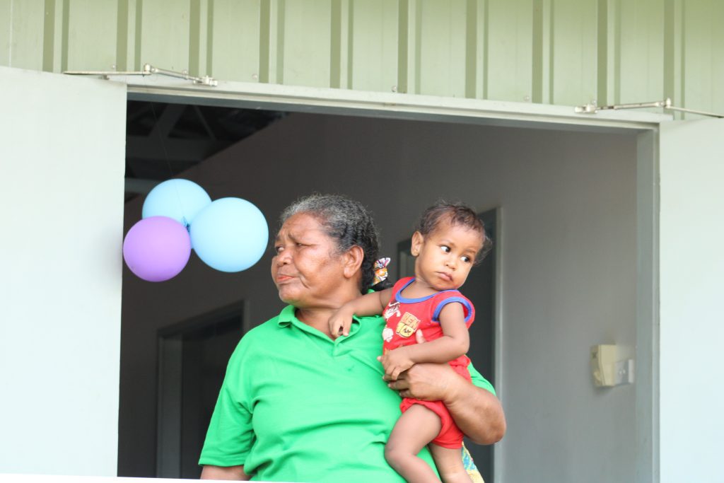 Rosemary is happiest when watching her community grow. When asked about her own family during the interview, her one-year-old grandson crawled over and grabbed for her. She smiled and picked him up. “This is my grandson; I call him my booboo.”