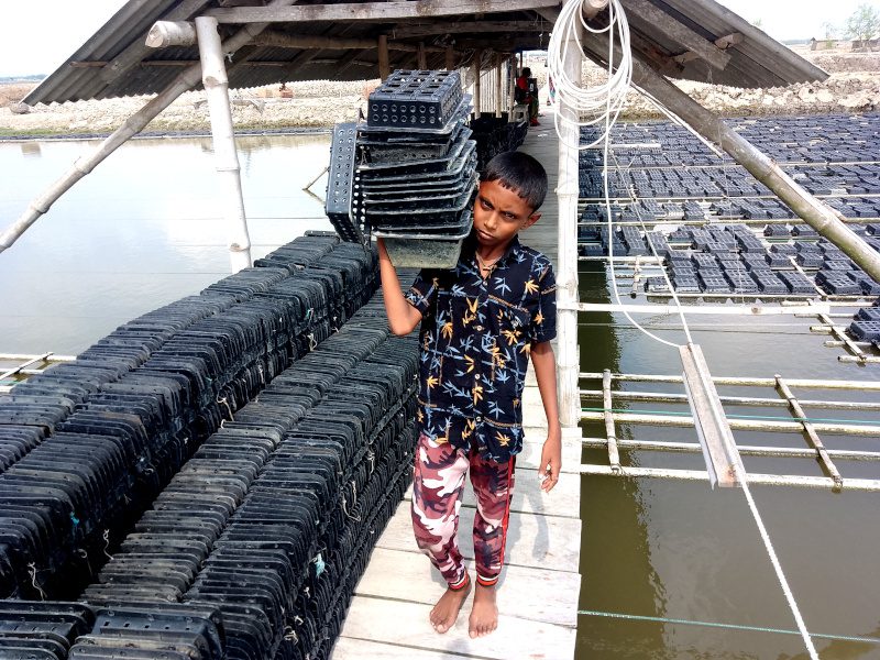 One example of a child worker is Naim, who is now 12 years old. His parents enrolled him in school at six. He was a regular student who achieved well, but after finishing the fourth grade he lost interest in his studies and joined his father on his fishing trips. He used to combine fishing in the river with working in the crab factory.